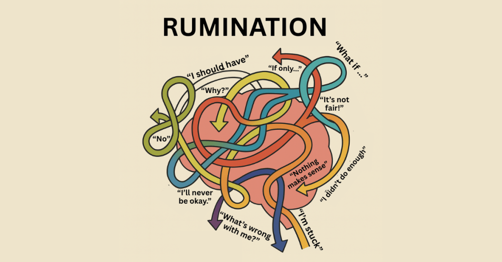 Rumination is a repetitive loop of thoughts, often centered on pain, confusion, guilt, or a longing to understand what happened. While it can look like problem-solving, it usually doesn’t lead to reconciliation. Instead, it keeps us circling the same emotional terrain.